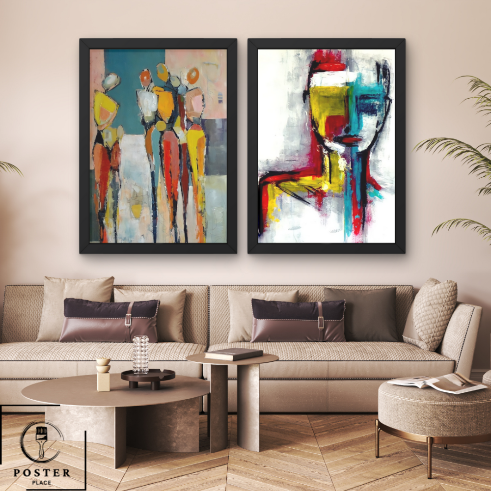 طقم لوحتين جدارية فنية على الطراز التجريدي