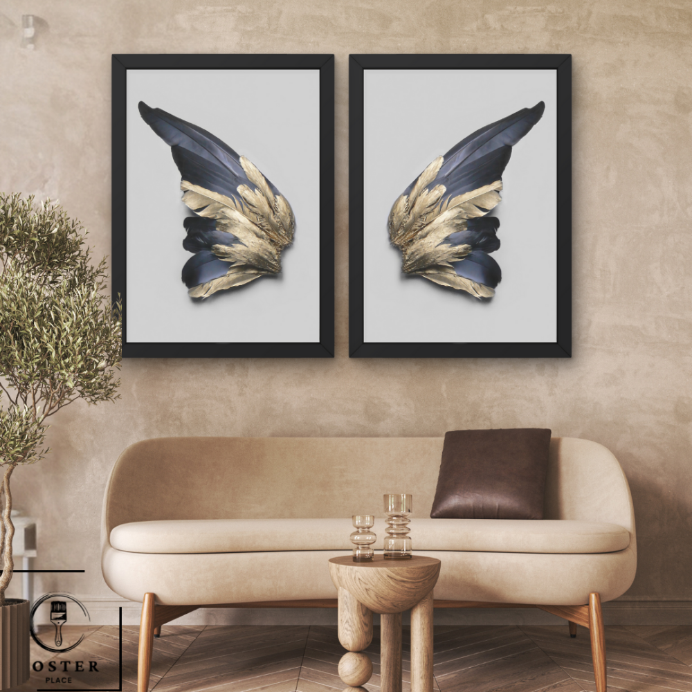 طقم 3 لوحات جدارية مع اجنحة ذهبية