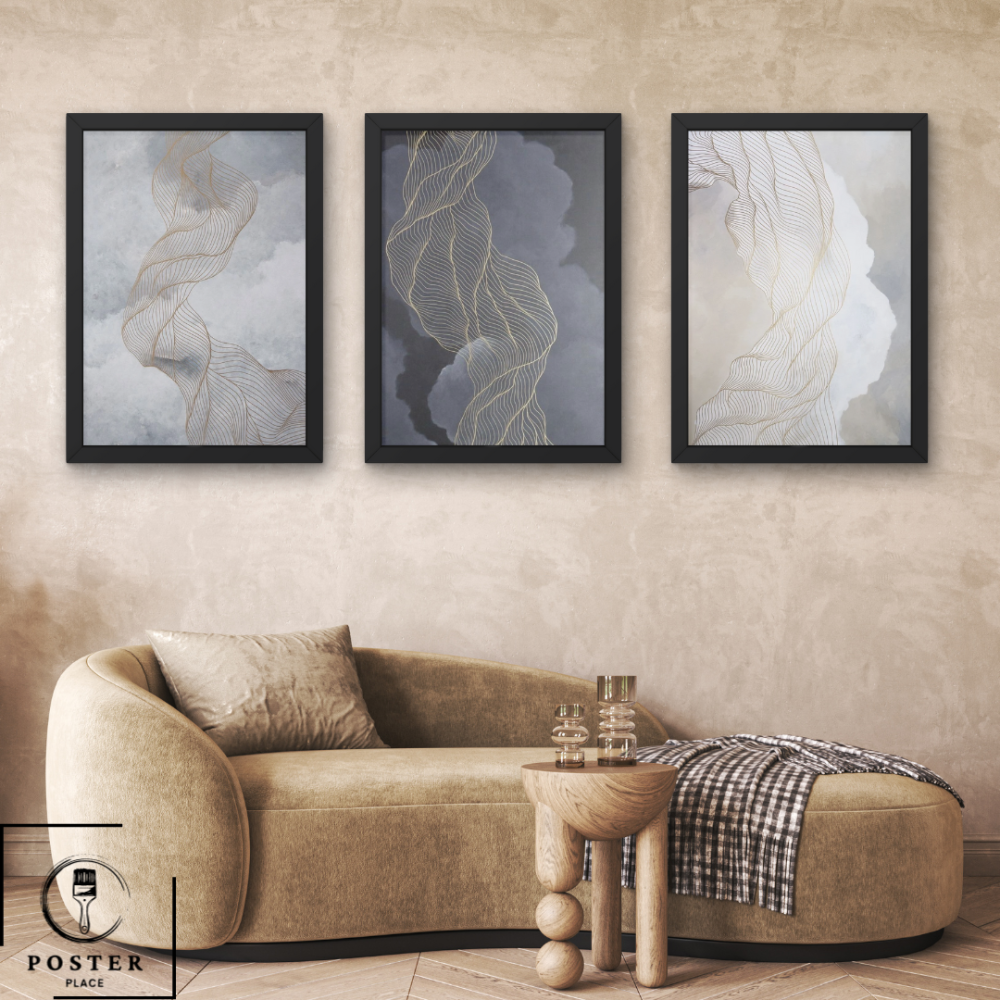 يمنحك طقم 3 لوحات كلاسيكية بتدرجات الرصاصي و الذهبي احساس بالاسترخاء والهدوء لا مثيل له، حيث تجسد التناغم بين السحاب الأبيض مع خيوط ذهبية لتغمرك بسعادة غير عادية، فاللوحات الجدارية ليست مجرد قطعة ديكور يتم تعليقها على الحائط إنما هي خلق روح جديدة للمكان لتروي قصة تعبر عن ذوق صاحبها وحسه الفني والإبداعي كهذه اللوحات المميزة التي تستحوذ على قلبك من الوهلة الأولى.